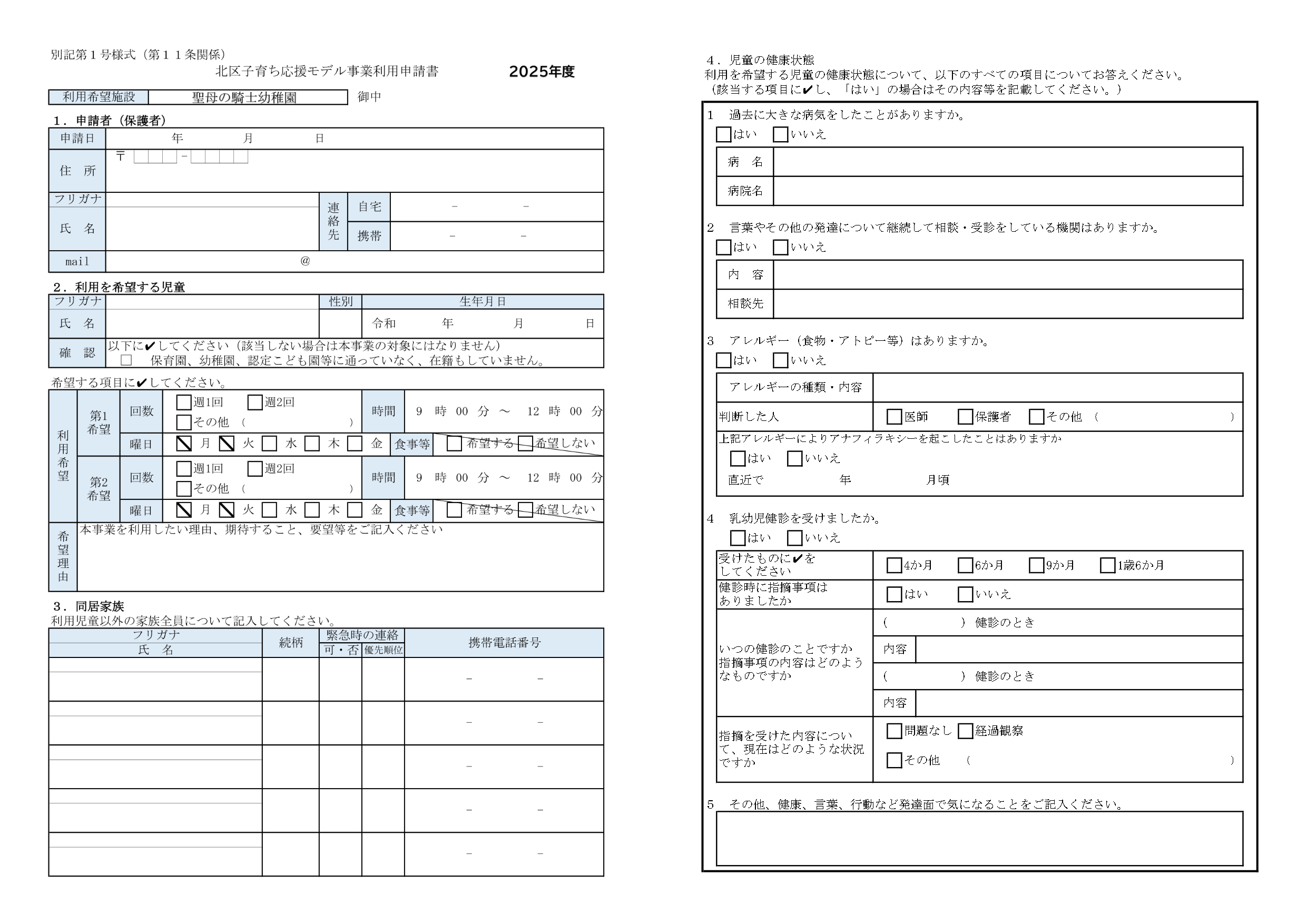 | 対象者 (原則) | 幼稚園や保育園などに在籍していないお子さま 2歳児[令和4年4月2日~令和5年4月1日生のお子さま] 満2歳児[令和5年4月2日~令和6年4月1日生で既に2歳になっているお子さま](令和8年1月~3月のみ対象) |