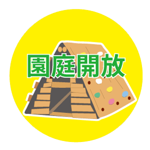 | おねがい | ◇園庭のみの開放となります。気温などにより、保育室を開放する場合はお知らせします。 ◇受付で必要事項を記入し、保護者とお子様の名札を着用ください。名札はどんなものでも結構です。各自でご用意ください。(幼稚園に、簡易的な白テープの準備はあります。) ◇お子様から目を離さないようにお願いします。安全に注意して遊びましょう。 ◇トイレは、サブエントランス脇の身障者用トイレをご使用ください。 ◇園内ではおやつなどの飲食はできません。水分補給をする場合は、お茶または水を水筒にいれてご持参ください。 ◇終了10分前になりましたら、遊んだ遊具はもとの場所に片づけてください。 |
