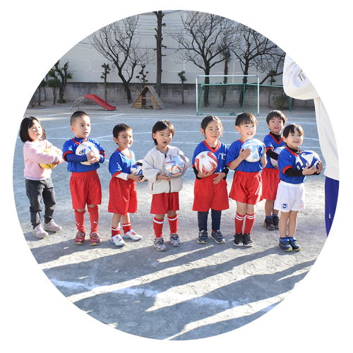 | サッカー教室 | 開催日:毎週水曜日 年少クラス 14:10-14:50 内容: サッカーの上達はもちろんですが将来的に自立が出来るようにサッカーを通して人として大切な事を伝えています。 費用:7.500円 申込方法:下記URLより サイト: https://www.youji.co.jp/guide.html |